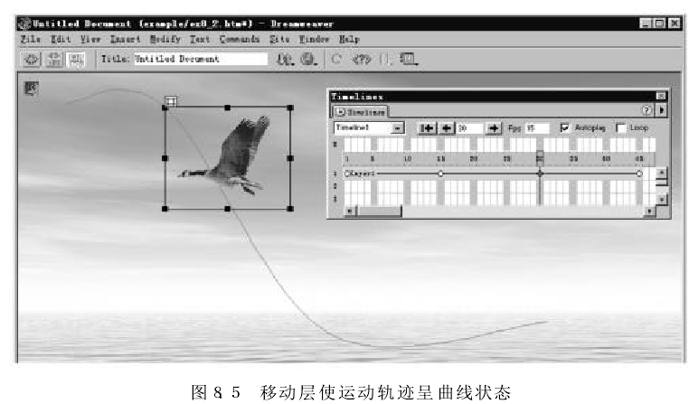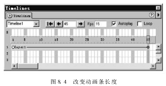 (9) 通過(guò)預覽動(dòng)畫(huà),發(fā)現小鳥(niǎo)的飛行速度太快了,可將“Fos" 中 的每秒幀數從15改為8,這樣可以降低小鳥(niǎo)的飛行速度。
