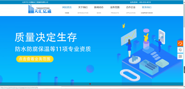 海洋網(wǎng)絡(luò )從2019年開(kāi)始與北京天匯億通建設工程集團有限公司簽約網(wǎng)站建設,幫助北京天匯億通建設工程集團有限公司網(wǎng)站設計及開(kāi)發(fā)網(wǎng)站多次網(wǎng)站平臺,此項目為北京天匯億通建設工程集團有限公司新版官方網(wǎng)站。