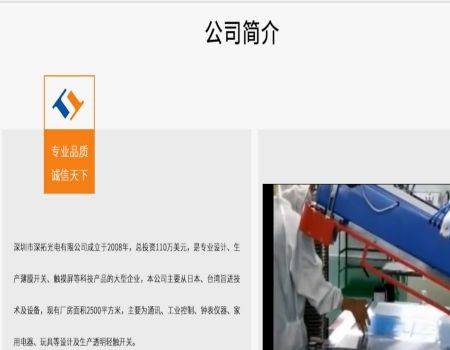 深圳市深拓光電有限公司選用我司企業(yè)商務(wù)型網(wǎng)站案例,其功能具備實(shí)用型所有配置外、特別值得關(guān)注的是增設了SEO深度優(yōu)化,不管是內頁(yè)還是標題都能夠獨立和個(gè)性化設置關(guān)鍵詞和長(cháng)尾詞,更適合進(jìn)行全站seo優(yōu)化。深圳市深拓光電有限公司是經(jīng)深圳市市場(chǎng)監督管理局審核的有資質(zhì)的公司,統一社會(huì )信用代碼:91440300083415112L,深圳市深拓光電有限公司地址:深圳市福田區華強北街道振華路159號高科德電子市場(chǎng)31028A。