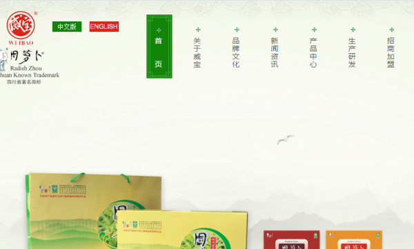 威寶食品有限公司的蔬菜原料基地被四川省農業(yè)廳認定為無(wú)公害蔬菜生產(chǎn)基地, “威寶”、”周蘿卜”兩個(gè)商標均先后獲得“內江市知名商標、四川省著(zhù)名商標”,公司已通過(guò)ISO9001:2008質(zhì)量管理體系認證、ISO22000食品安全體系認證,獲得國家食品安全生產(chǎn)許可證(QS)、國家計量免檢認證(C標志)、國家級守合同重信用企業(yè),被四川省質(zhì)量技術(shù)監督局評為四川省企業(yè)質(zhì)量信譽(yù)AA級企業(yè),公司技術(shù)中心被評為內江市企業(yè)技術(shù)中心,“威寶”牌周蘿卜醬菜系列產(chǎn)品被省政府授予四川名牌產(chǎn)品,取得了中華人民共和國出口商品商檢衛生注冊,現在公司已經(jīng)被評為內江市高新技術(shù)企業(yè)。在2010年7月“威寶”周蘿卜系列產(chǎn)品通過(guò)省上組織各方專(zhuān)家組對全省43家企業(yè)143個(gè)泡菜產(chǎn)品的評選中,由于產(chǎn)品質(zhì)量好、包裝規范、美觀(guān)、獨特,得到了全體專(zhuān)家的一致好評,脫穎而出,成為了5家企業(yè)10個(gè)精品泡菜之一。威寶牌“周蘿卜蘿卜干”產(chǎn)品,榮獲了四川省泡菜協(xié)會(huì )授予“四川泡菜精品”殊榮,威寶公司獲得四川泡菜十強企業(yè);經(jīng)北京東鵬資產(chǎn)評估事務(wù)所評估“威寶”品牌價(jià)值為人民幣1.3億元。