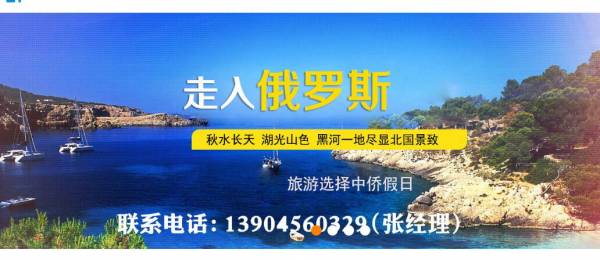 黑河中*假日旅行社有限責任公司——歡迎光臨俄羅斯專(zhuān)業(yè)地接電話(huà):13904560329。黑河中*假日旅行社是由黑龍江省旅游局批準,經(jīng)省工商局登記注冊,并足額繳納質(zhì)量保證金的一家旅游企業(yè)。公司機制靈活、產(chǎn)權獨立、管理先進(jìn)、實(shí)力雄厚、信譽(yù)卓著(zhù)。中僑假日旅行社擁有多年從事旅游工作,精通業(yè)務(wù)的高素質(zhì)管理隊伍,以及服務(wù)周到、經(jīng)驗豐富、管理規范的導游隊伍。公司主要經(jīng)營(yíng)范圍包括會(huì )務(wù)服務(wù)、出入境旅游、國內旅游、酒店預訂等*********的旅游服務(wù)。