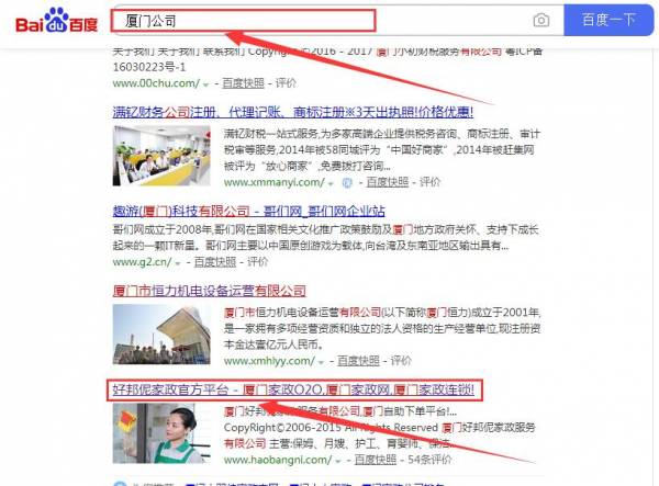 我們公司與廈門(mén)好*伲家政服務(wù)有限公司合作中,對這個(gè)公司所經(jīng)營(yíng)的家政保潔這個(gè)行業(yè)提供了搜索引擎優(yōu)化推廣,同時(shí)讓我們積累到更多的經(jīng)驗,與廈門(mén)好*伲家政服務(wù)有限公司這個(gè)公司建立了友好的合作伙伴的關(guān)系,也提高了海洋網(wǎng)絡(luò )在同行業(yè)的知名度,提高了廈門(mén)好*伲家政服務(wù)有限公司在同行業(yè)的知名度,發(fā)展越來(lái)越好。