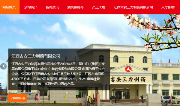 我們公司與江西吉安三*制藥有限公司合作中,對這個(gè)公司所經(jīng)營(yíng)的中西藥品這個(gè)行業(yè)提供了網(wǎng)站開(kāi)發(fā),與該公司的合作,更多的客戶(hù)讓我們公司為其提供網(wǎng)站開(kāi)發(fā),通過(guò)每一次合作,我們公司不斷完善自己,同時(shí)希望合作伙伴在經(jīng)營(yíng)的路上越來(lái)越好。
